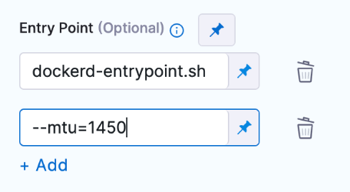 If you want to add your Entry Point arguments to the image ENTRYPOINT, include both the image ENTRYPOINT, such as dockerd-entrypoint.sh, and your additional arguments in Entry Point.