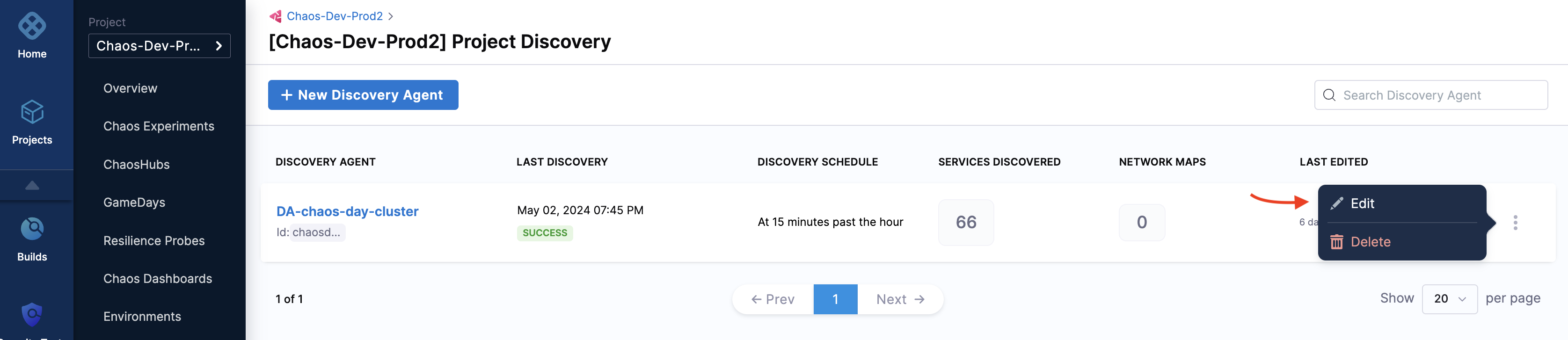 To edit a discovery agent, navigate to the agent (that you created earlier) and click Edit. Make the necessary changes to the required fields.