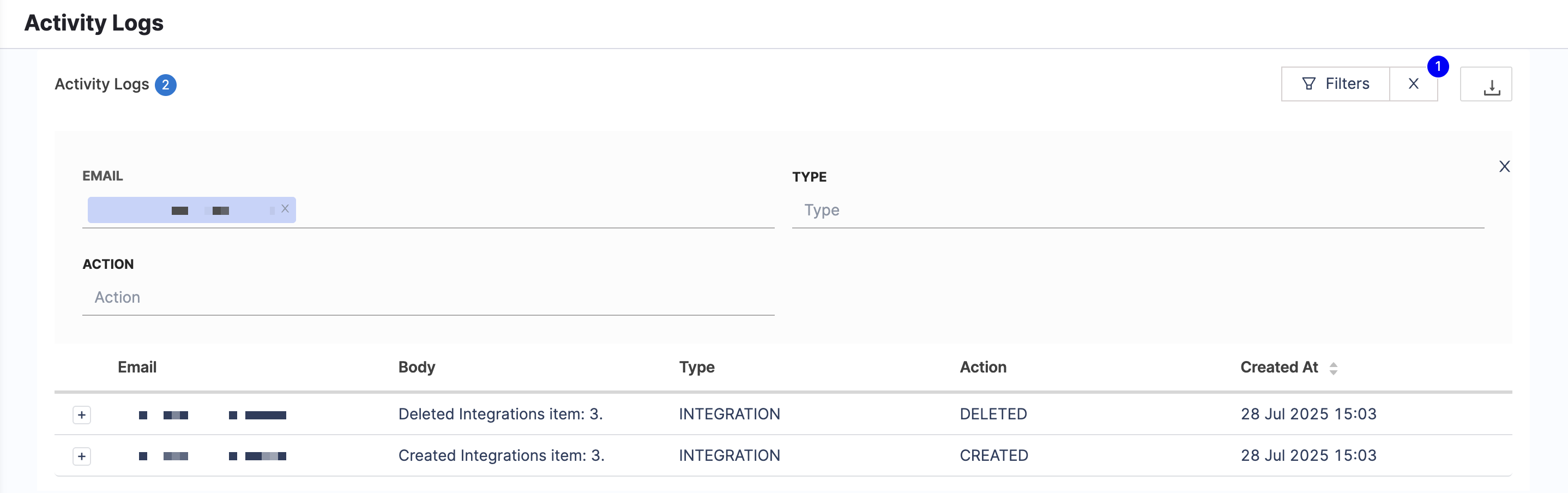 | Filter logs by the email address of the member who performed the action. Click Add Value to include one or more email addresses in your search. | |